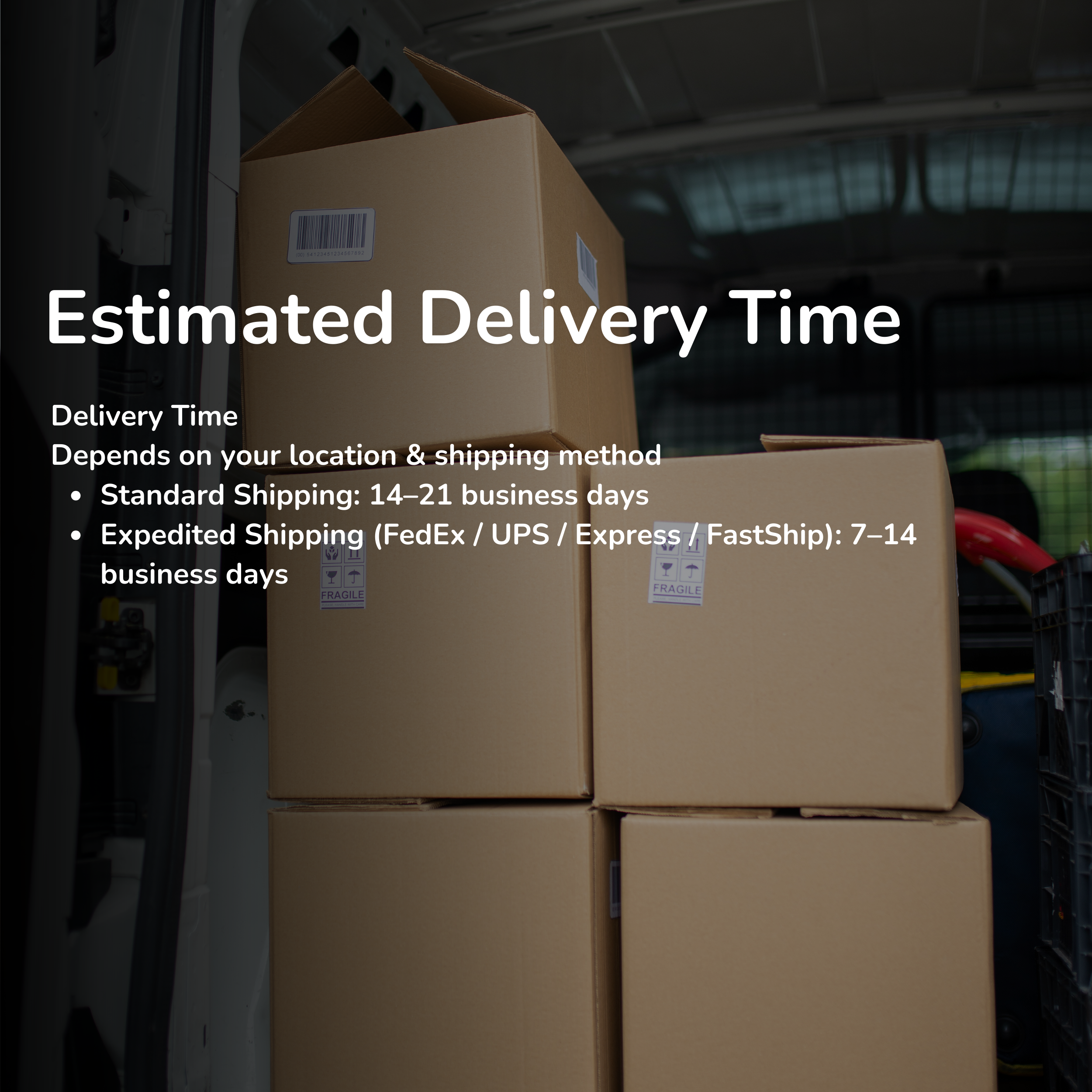 Expedited shipping options such as FedEx, UPS, Express, and FastShip are available and usually take 7–14 business days.